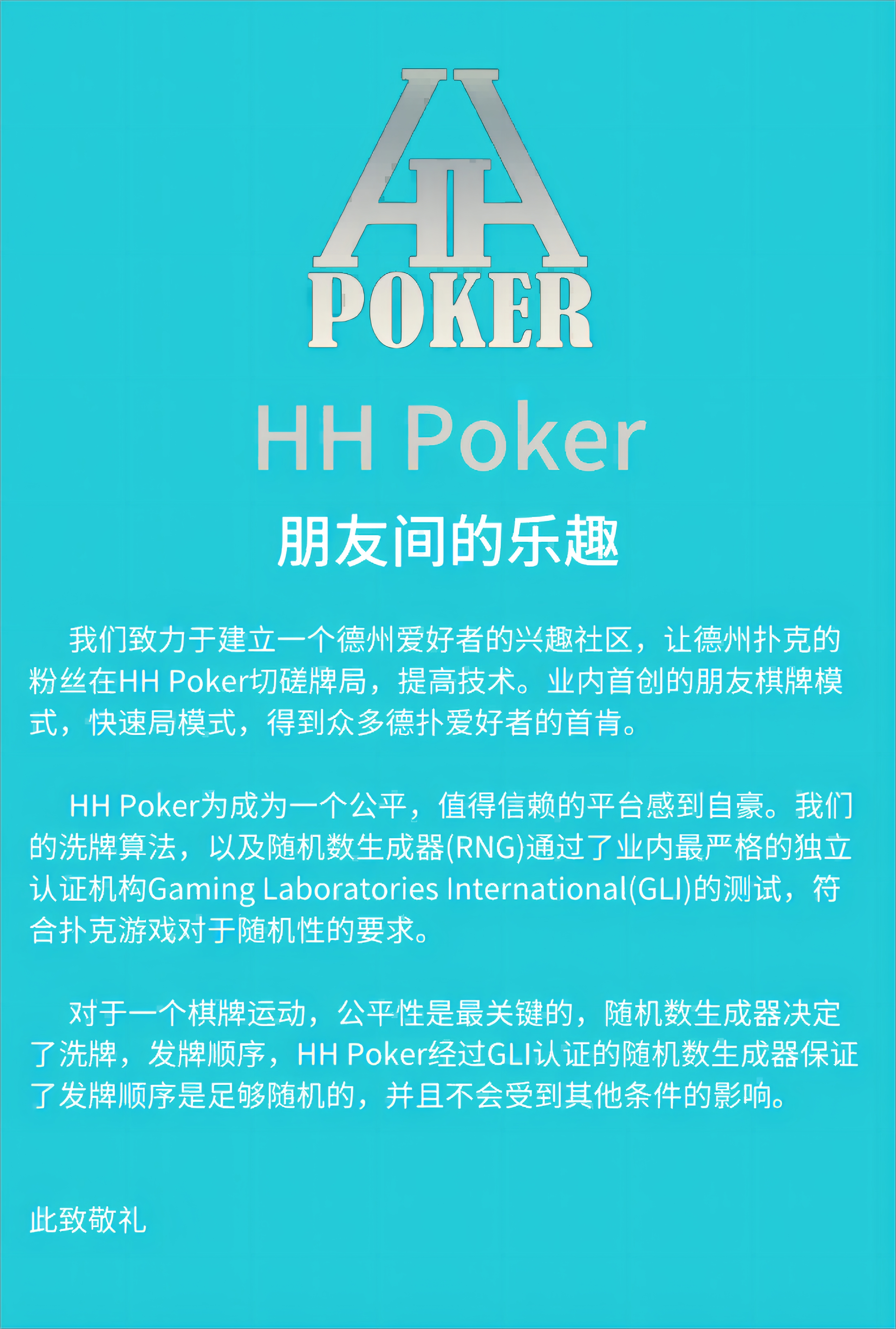 本站提供HHpoker官方正版APP安卓客户端Ios苹果下载网址,并推荐排行前十实力靠谱联盟9级hhpoker俱乐部,1.2.4大小全级别优质牌局全天开放。